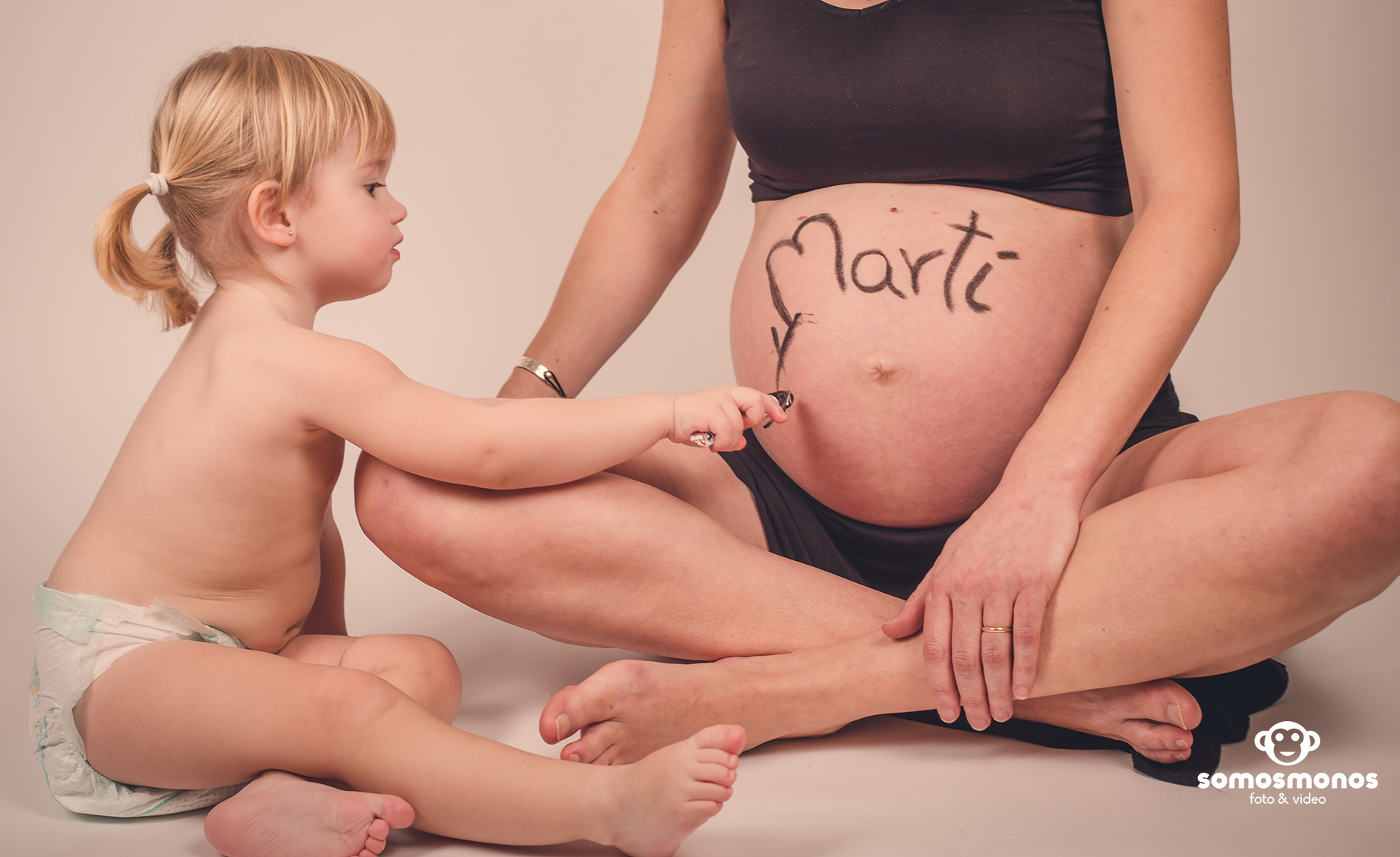 Nos encantan las fotos con los hermanos mayores. Laia, de casi dos añitos, tiene muchas ganas de que llegue su hermanito.